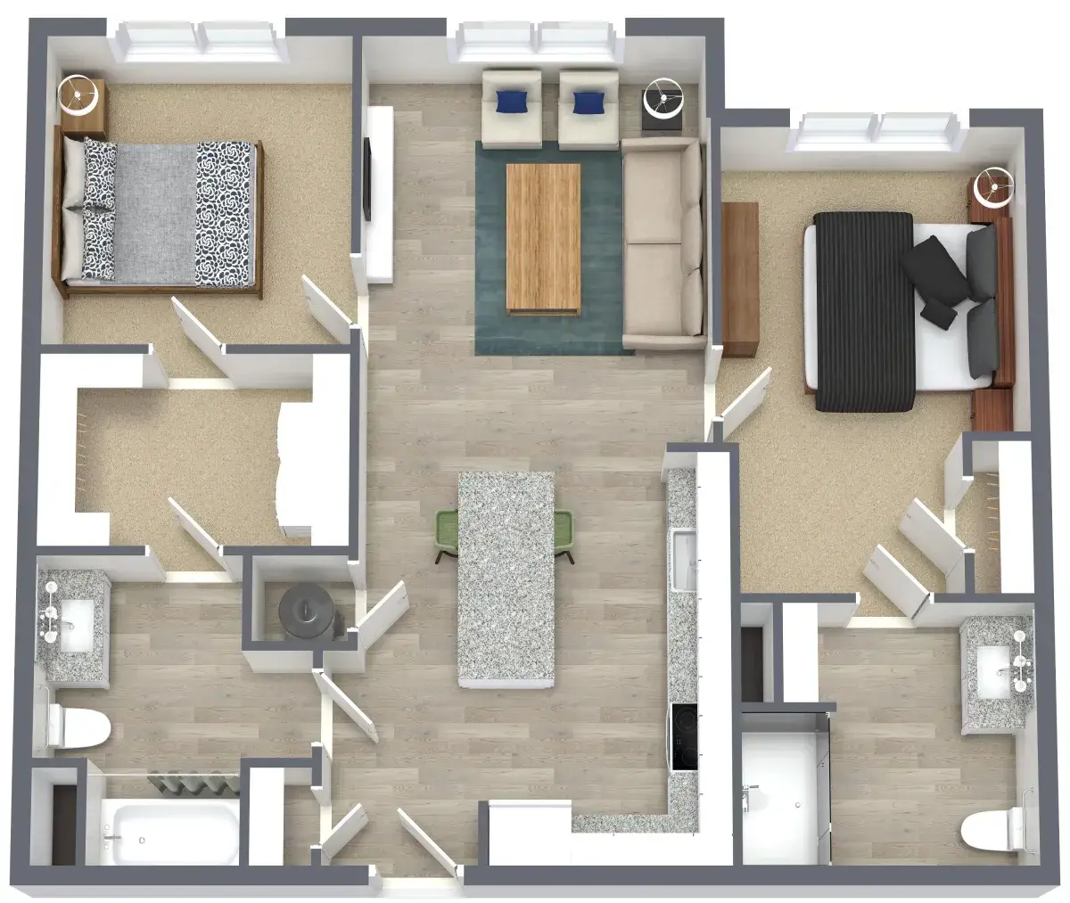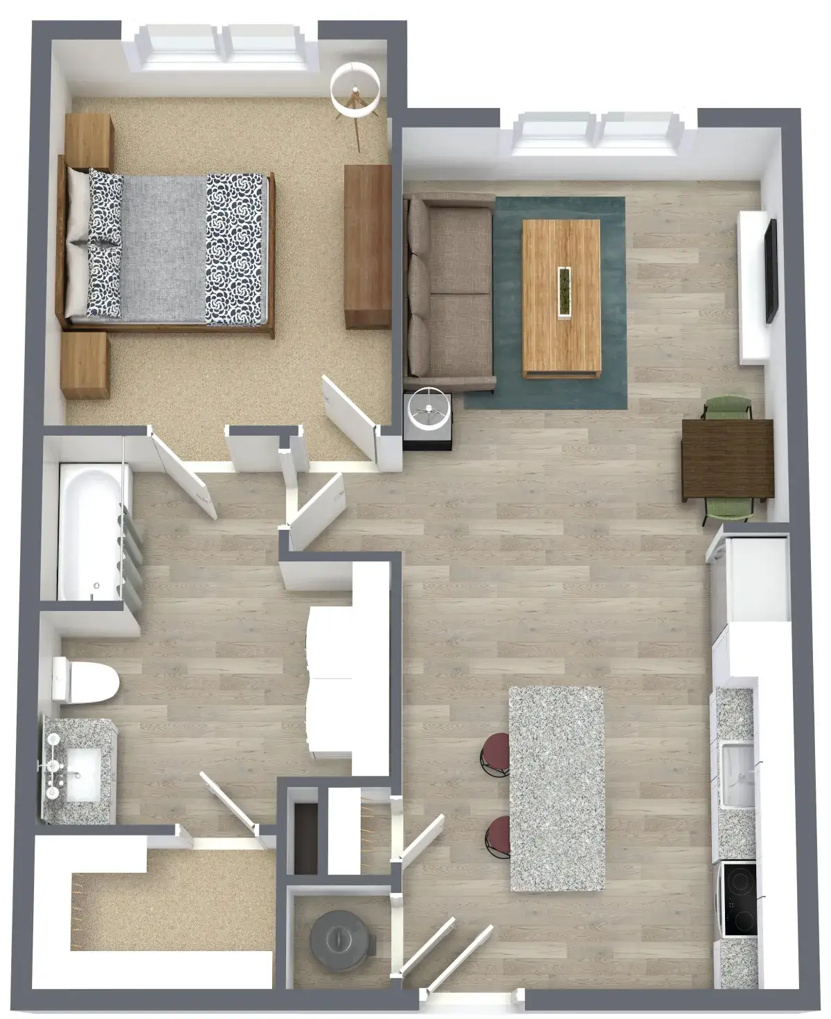 Floor plans are artist’s renderings. All dimensions are approximate. Actual product and specifications may vary in dimension or detail. Not all features are available in every apartment home. Prices and availability are subject to change. Rent is based on monthly frequency. Additional fees may apply, such as but not limited to package delivery, trash, water, amenities, etc. Deposits vary. Please see a representative for details.